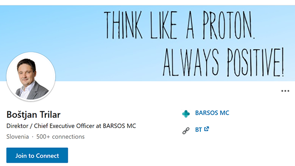 Povsem na tiho je novi direktor ljubljanske klinike Barsos, razvpite po aferi Baričevič, postal nekdanji župan Kranja Boštjan Trilar, dosedanji direktor Barsosa Simon Vrhunec, prej dolgoletni direktor UKC Ljubljana, pa se je pod Trilarjem umaknil na varno funkcijo svetovalca. Za Trilarja ne bi niti izvedeli, če ne spremljali poslovnega omrežja LinkedIn, saj so denimo na lokalnem spletnem portalu Kranjska trma še pred kratkim poročali, da naj bi se Trilar zaposlil pri Alešu Sladojeviću oziroma njegovi družbi Heads Adriatic (vir).