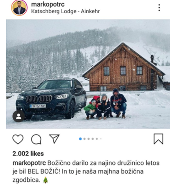 Zgodba o "belem božiču" družine Potrč, ki jo je radijski in televizijski voditelj Marko Potrč objavil na instagramu, so družbena omrežja kmalu ter učinkovito razkrinkala in raztrgala. Pri tej "solzavi zgodbi" je namreč šlo zgolj za poceni in banalno reklamo avtomobila znamke BMW, ki ga je omenjeno podjetje za nekaj dni posodilo družini Potrč, pa še to z nemško registracijo. Kar bi, kot je pripomnil nekdo na twitterju, utegnilo zanimati tudi Furs.