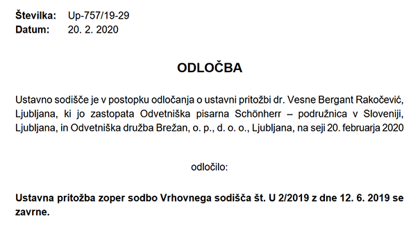 Sodnica Vesna Bergant Rakočević, v zadevah toksičnega kreditiranja v chf klavzuli še naprej izdaja sodbe oziroma sklepe, v katerih krši pravo EU in slovensko zakonodajo in se pri tem izdatno sklicujejo na sporno prakso Vrhovnega sodišča RS. Z vsako tako odločitvijo sodišče izvaja pritisk na slovenske družine, ki pod bremenom sodnih in odvetniških stroškov klecajo, prekinjajo postopke in živijo v strahu pred naslednjim obračunom stroškov. Slovenski sodstvo (izjema je sodišče v Mariboru) sistematično krši pravice oškodovanih kreditojemalce v sodnih primerih stanovanjskega kreditiranja v chf klavzuli, za katere so odgovorna slovenska sodišča, in to kljub temu, da je Evropska komisija julija 2019 izdala Smernice za razlago in uporabo Direktive o nepoštenih pogojih v potrošniških kreditih, v katerih je na integralen način predstavljena in referirana ključna sodna praksa Sodišča EU. A vse to za slovenska sodišča, državne institucije in vladno politiko ni dovolj, da bi sodila pošteno in zaščitila svoje državljane – potrošnike pred finančnimi korporacijami v skladu z evropsko in nacionalno zakonodajo. To so že storili v Španiji, v Franciji, v Nemčiji, na Hrvaškem, Poljskem, Madžarskem, v Srbiji in Črni Gori. Samo v Sloveniji ne. Nekaj gnilega je v deželi slovenski, velja tudi za nadutega komentatorskega nakladača večerne informativne oddaje na RTV SLO1
