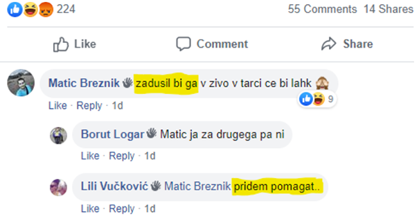 Večinski mediji so včeraj poročali o grožnjah prek spleta zdravniku Rihardu Knaflju, ki jih je že prijavil policiji, dogajati pa se je začelo po četrtkovi Tarči na RTV Slovenija (vir). Toda ne grozijo samo Knaflju, ampak tudi ministru Zdravku Počivalšku (SMC) in državni sekretarki Jelki Godec (SDS), sodeč po zapisih na facebooku, na primer na profilih "Skupina podpore Ivanu Galetu" in "Vseslovenska vstaja naroda".