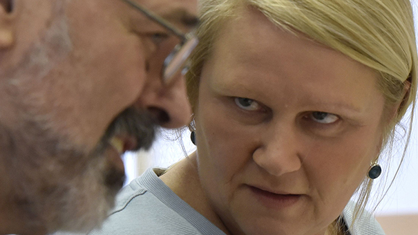 Neverbalna komunikacija oziroma slika pove več kot 1000 besed - poglejte ta zarotniški, neiskren, hinavsko zahrbten in hkrati preplašen pogled Gorščakove. Ja, ja tale postarana in zaskrbljena teta ima veliko masla ... predvsem na glavi. Prav srhljivo. Za v učbenike psihologije komuniciranja.