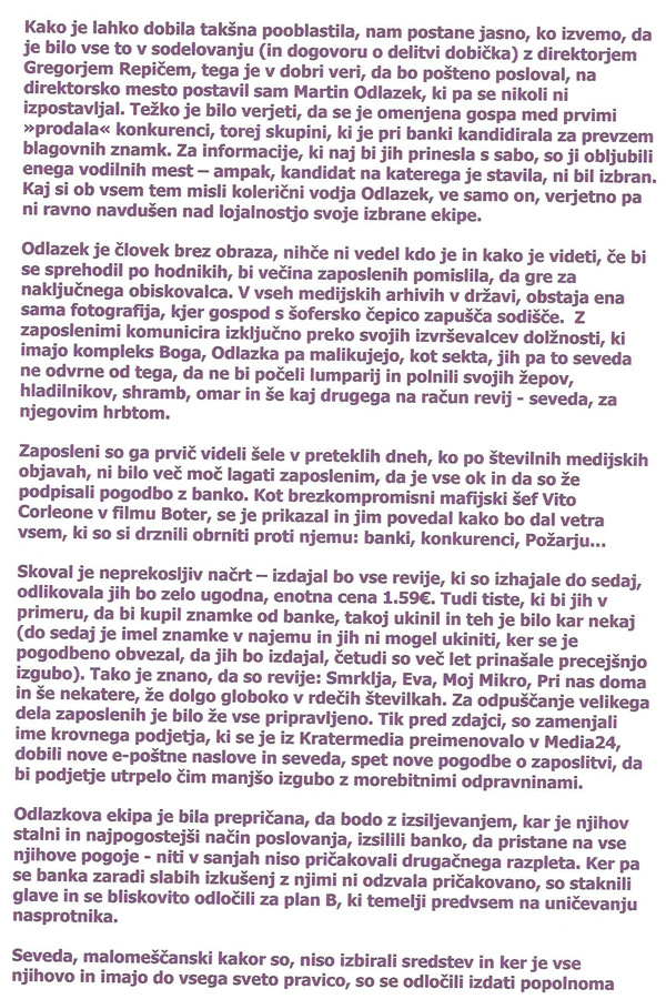 ... Odlazek je človek brez obraza, nihče ni vedel, kdo je in kako je videti ... Zaposleni so ga prvič videli šele v preteklih dneh, ko po številnih medijskih objavah ni bilo več mogoče lagati, da je vse okej in da so že podpisali pogodbo z banko ...