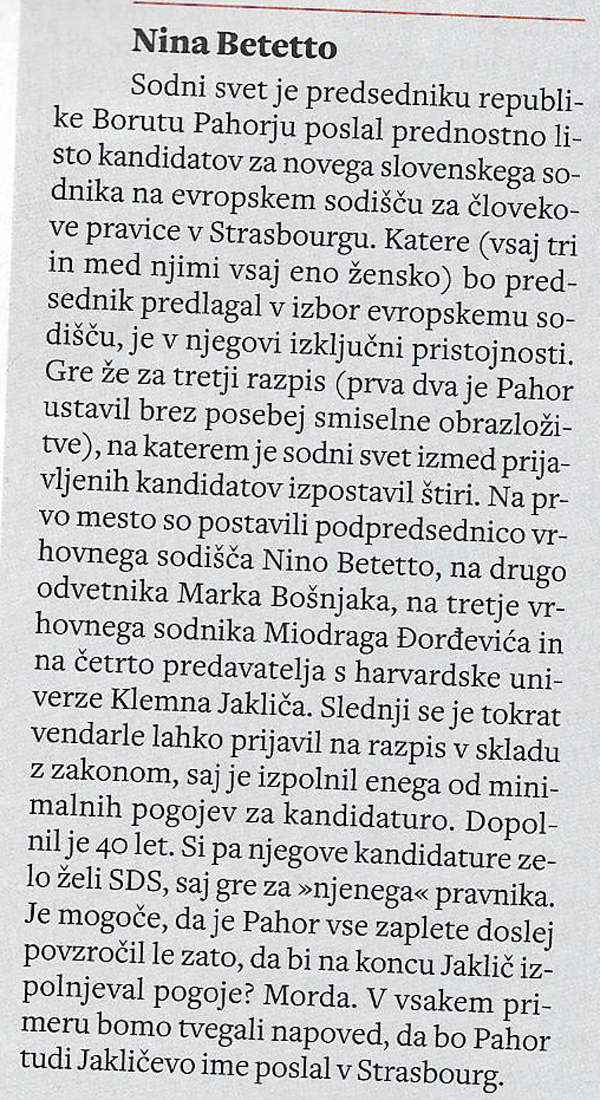 Mladina je že dala signal, kako naj bi se poroča o tej temi. Forsira naj se Nino Betetto, zganja pritisk na predsednika Pahorja in poskuša diskredirati Klemna Jakliča.