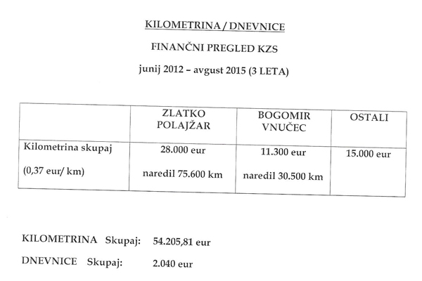 ... poleg tega si je Zlatko Polajžer doslej izplačal za 28 tisoč evrov kilometrine in dnevnic, prejšnji predsednik KZS Bogomir Vnučec pa 11.300 evrov.