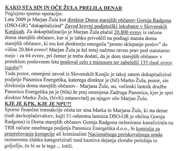 To je del članka, zaradi katerega je Marjan Žula predlagal sodišču, naj novinarja obsodi na dvakrat po en mesec pogojne zaporne kazni ter plačilo 4.500 evrov (za povečavo kliknite na sliko).