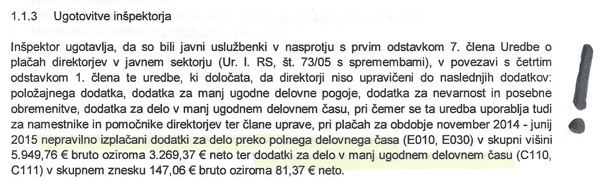 ... med drugim ugotovil, da si je res nezakonito izplačevala nadure, in sicer nekaj več kot 6 tisoč evrov (za povečavo kliknite na sliko).