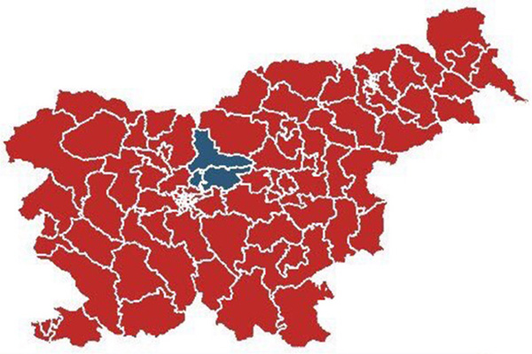 ... Graf, ki prikazuje zmago Boruta Pahorja v 84 volilnih okrajih po Sloveniji (obarvano rdeče), medtem ko je Marjan Šarec zmagal le v treh (obarvani modro). Vir: Državna volilna komisija