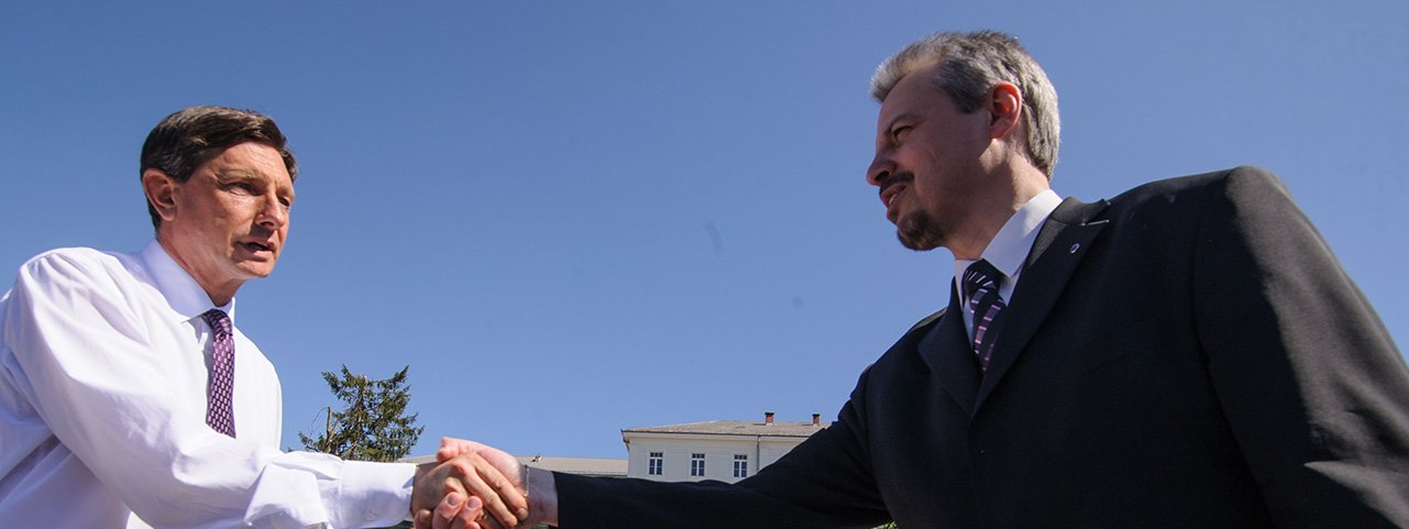 Robert Smrdelj (levo Borut Pahor) je pivški župan že od leta 1998. Podpirajo ga številne stranke, na desnici in levici.