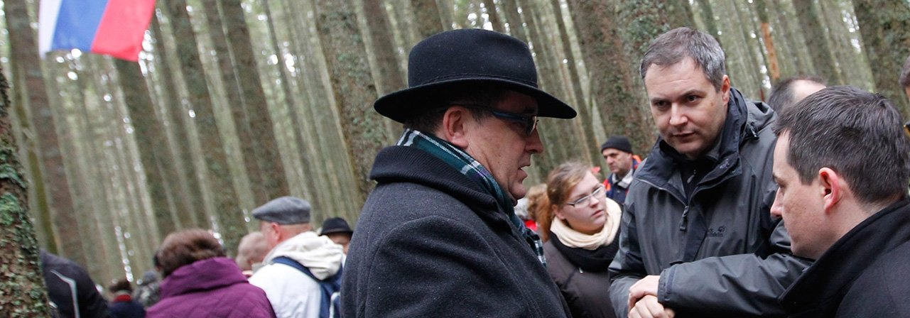 Andrej Fištravec, Dejan Židan in Marko Žula na partizanski proslavi na Osankarici