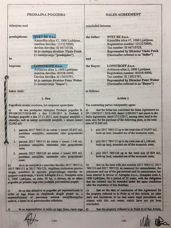 ... tukaj pa pogodba med agencijo SVET RE in švicarsko družbo Lonstroff, d. o. o.