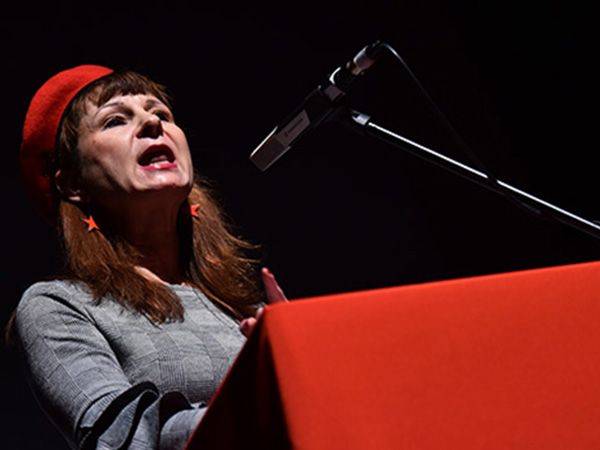 Violeta Tomič, poslanka Levice, ki si želi socializem, med govorom na včerajšnjem kongresu Levice.