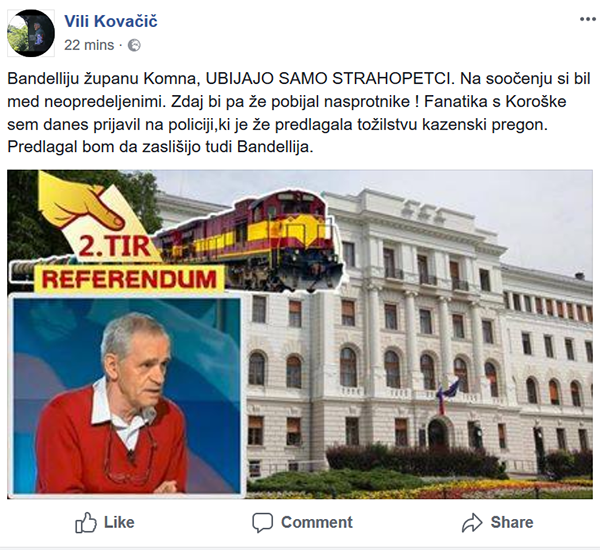 Vili Kovačič je že napovedal, da bo policiji in državnemu tožilstvu predlagal tudi zaslišanje politika Marka Bandellija, župana Komna in podpredsednika Stranke Alenke Bratušek.