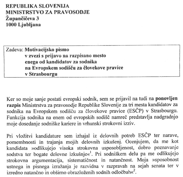 V posebnem motivacijskem pismu, ki ga je vrhovni sodnik Miodrag Đorđevič priložil svoji prijavi, je med drugim zapisal, da so bile njegove sanje postati evropski sodnik (za povečavo kliknite na sliko).