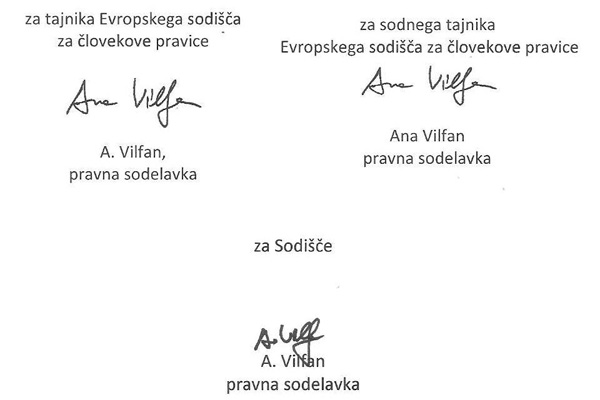 Dokumente enega od primerov, ko naj bi Ana Vilfan Vospernik poskrbela, da Evropsko sodišče za človekove pravice pritožbe slovenskega državljana (ime in priimek sta znana uredništvu) ni vzelo v obravnavo, je kandidatka za bodočo evropsko sodnico podpisala kar v treh različnih funkcijah.
