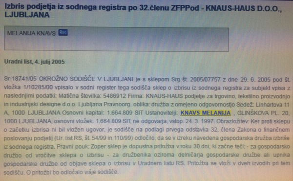 To sta dva izpisa iz sodnega registra sodišča v Ljubljani, ki dokazujeta ...