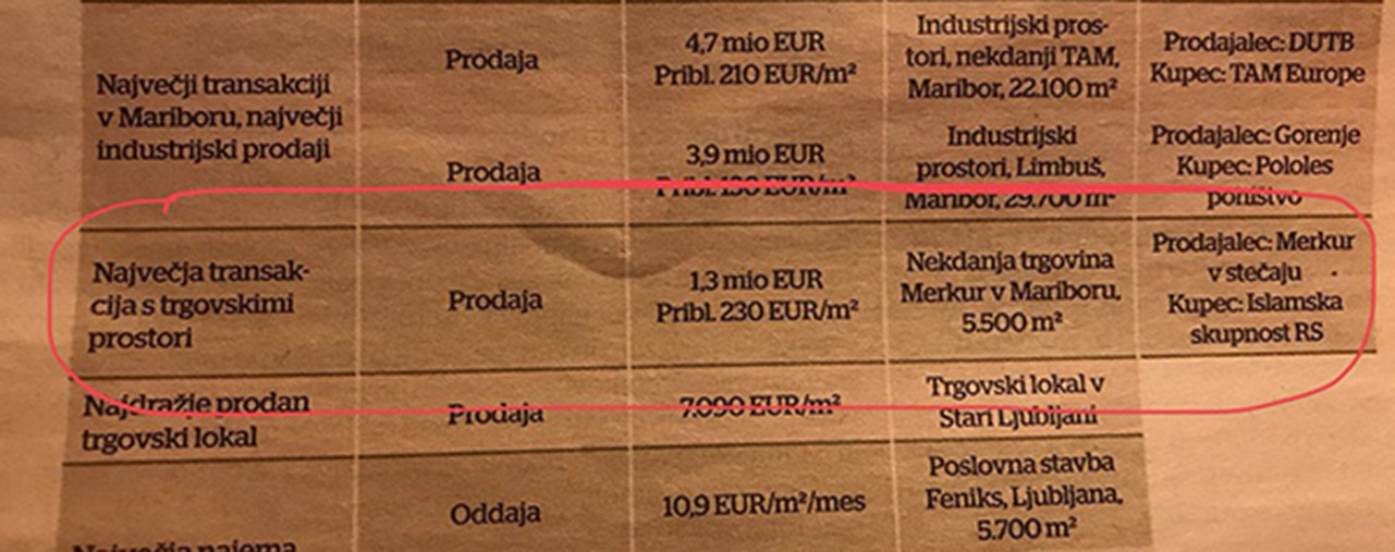 Nakup Merkurja za 1,3 milijona evrov je bila največja transakcija s poslovnimi prostori v Mariboru.