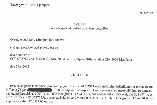 Tanja Žagar je za svoje stanovanje odštela dobrih 270 tisoč evrov (za povečavo kliknite na sliko).