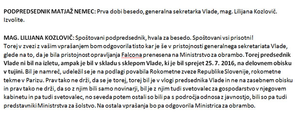 Odgovor Lilijane Kozlovič na poslansko vprašanje o poletu v Pariz (za povečavo kliknite na sliko).