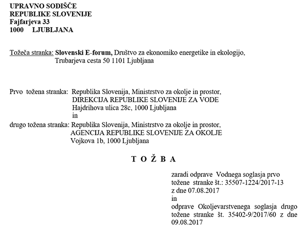 Gorazd Marinček je zoper Direkcijo za vode in Arso vložil tudi tožbo na ljubljansko upravno sodišče.