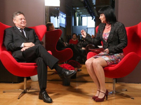 Andreja Jernejčič in Zoran Janković med snemanjem oddaje Zajtrk PR Andreji v Novem mestu