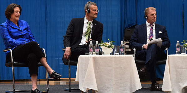 ... družil (na sliki desno, v sredini Stephan Neugebauer iz evropskega projekta Ertrac) pa se je tudi z odhajajočo slovensko evropsko komisarko Violeto Bulc.