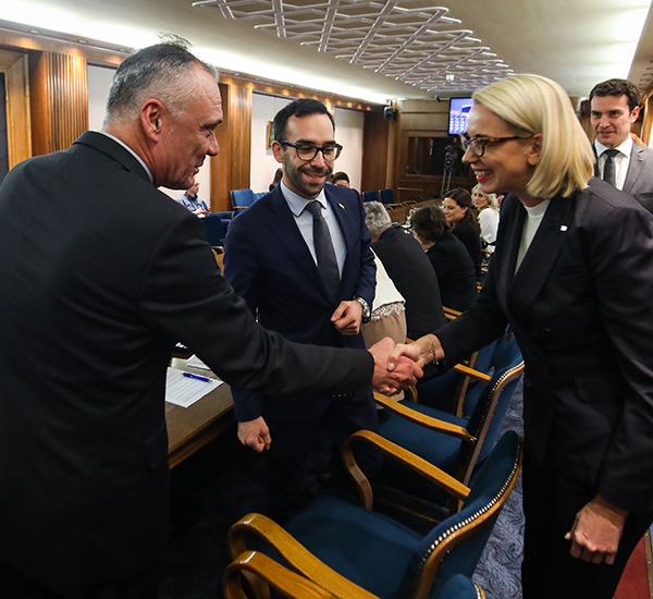 Igor Peček, predsednik parlamentarnega odbora za zadeve Evropske unije in poslanec LMŠ (na sliki se rokuje z Mlinarjevo), se je na torkovem zaslišanju osramotil podobno kot - Angelika Mlinar. Le da on (še) ne kandidira za ministra.