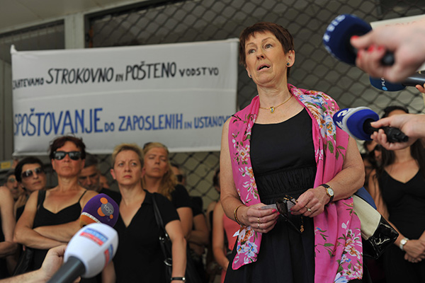 7. julij 2017. Marjetica Mahne kot predsednica sveta zavoda Slovenska filharmonija na čelu stavkajočih proti tedanjemu direktorju Damjanu Damjanoviču (foto: STA)