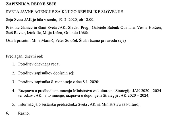 Zapisnik 9. seje JAK.