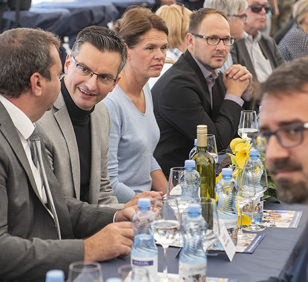 Marko Bandelli, Marjan Šarec, Alenka Bratušek in - prihodnji minister za infrastrukturo v Janševi vladi - Jernej Vrtovec (Nova Slovenija) septembra 2018 v Ajdovščini (foto: STA)