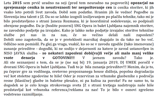 Faksimile: iz pisma Tadeja Keniga, poslanega tudi na ministrstvo za kulturo.