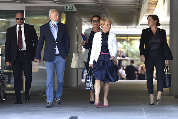Ekipa Aleksandre Pivec včeraj: Od varnostnika na levi do odvetnice Nine Zidar Klemenčič na desni. Vmes pa Janez Ujčič in Anita Manfreda. (foto: Bobo)