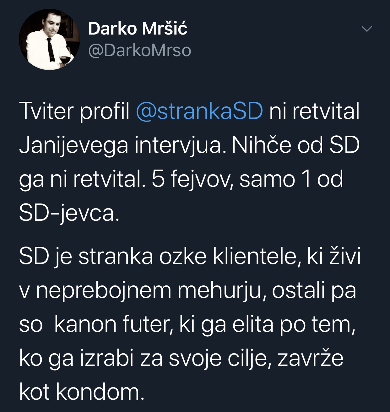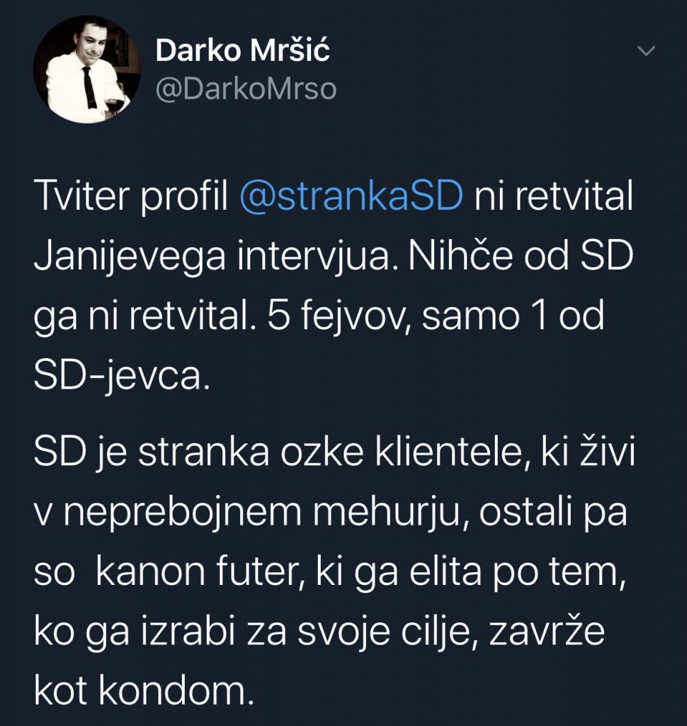 Vir: twitter (opomba: Darko Mršić je nekdanji vidni član SD).