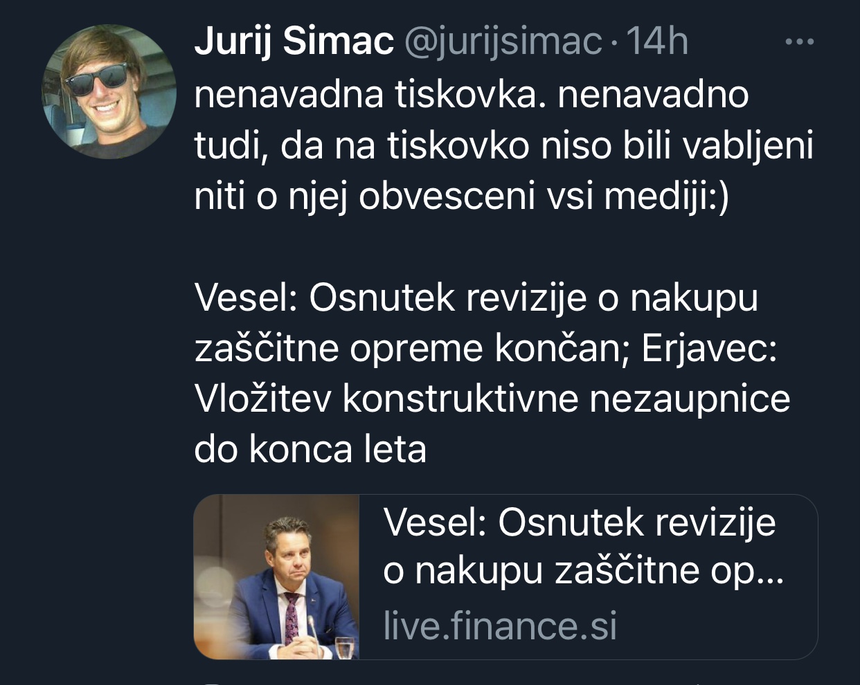 Vir: Jurij Šimac, novinar Financ, na twitterju
