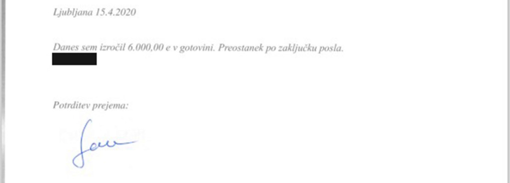 Ivanu Galetu naj bi denar izročil slovaški državljan (ime in priimek iz pričujočih dokumentov je znan uredništvu), ki pa je od Galeta, kot kažejo ti dokumenti, zahteval njegov podpis, da je denar prejel.