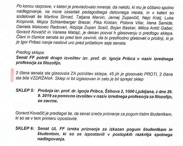 Vir: del zapisnika seje senata Filozofske fakultete v Ljubljani, 21. 10. 2020