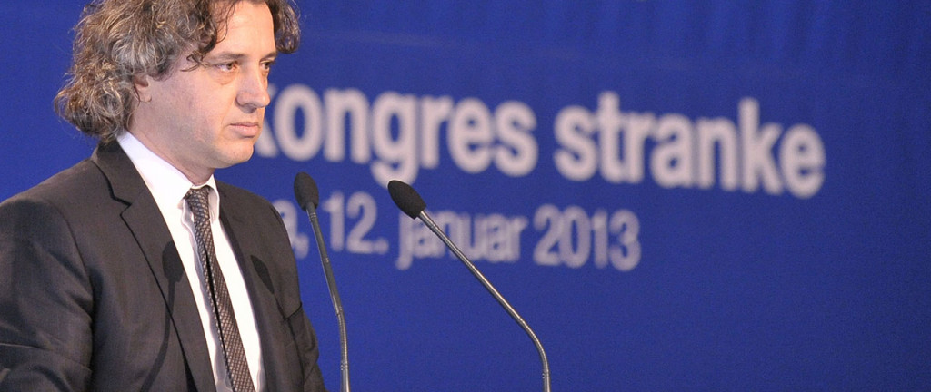 Robert Golob daljnega 12. januarja 2013, na kongresu Jankovićeve Pozitivne Slovenije, kjer je med drugim postal tudi podpredsednik te stranke. (foto: Bobo)