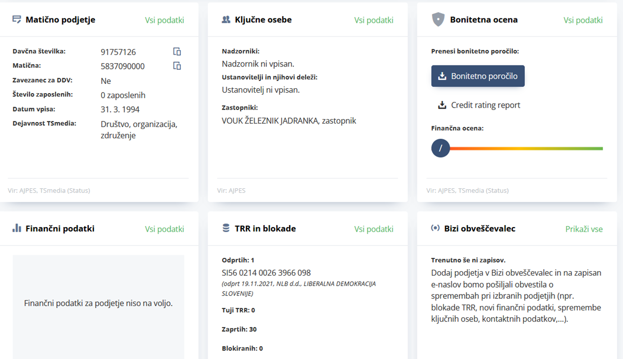 Trenutno poslovno stanje LDS. Vir: Bizi / Ajpes