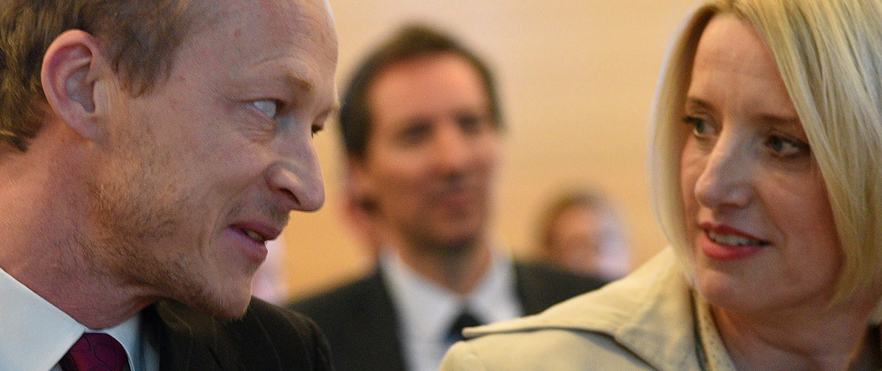 Borut Jamnik in Bernarda Babič na skupščini Telekoma Slovenije, 2017 (foto: Bobo)