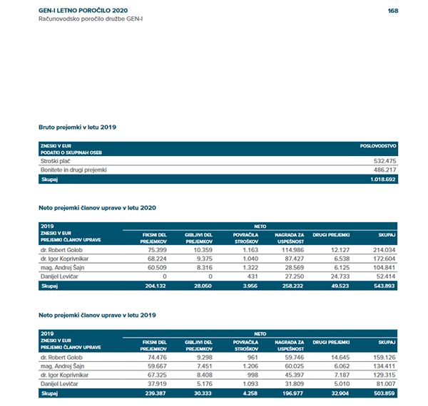 Iz letnega poročila GEN-I - za leto 2020, stran 168