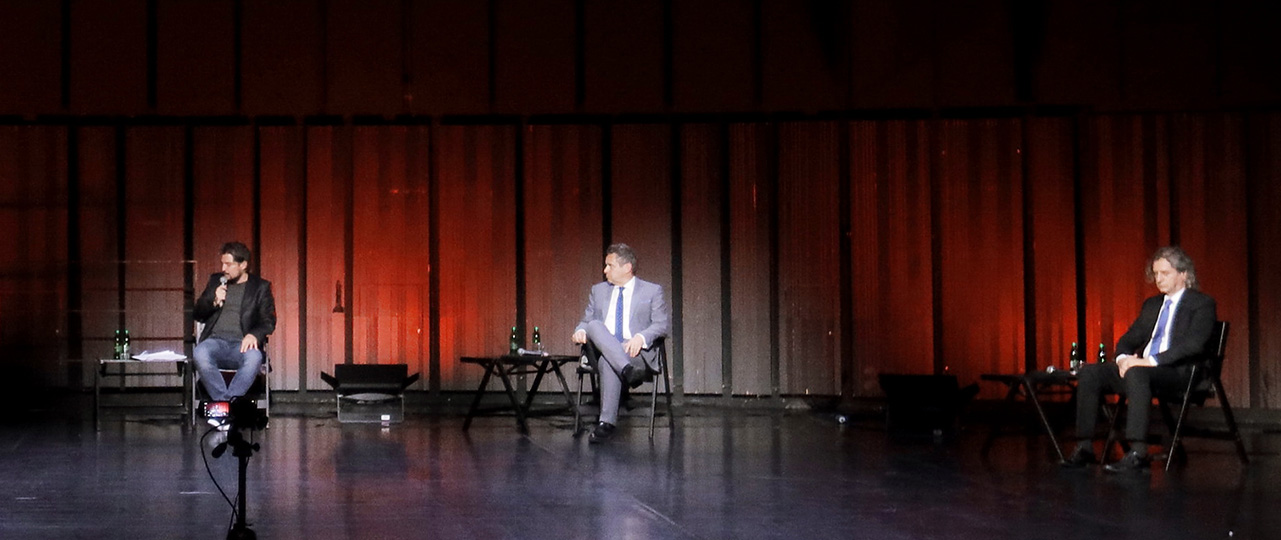 Primož Cirman, Tomaž Vesel in Robert Golob v Kinu Šiška (foto: Bobo)