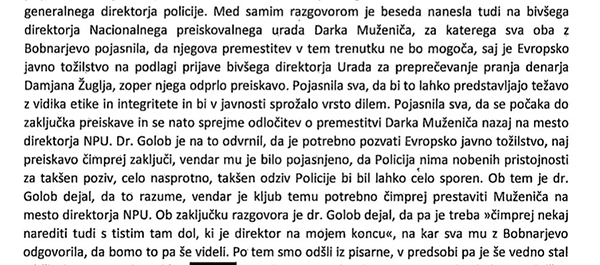 Iz poročila v. d. generalnega direktorja policije Boštjana Lindava, poslanega Golobu, 7.12.