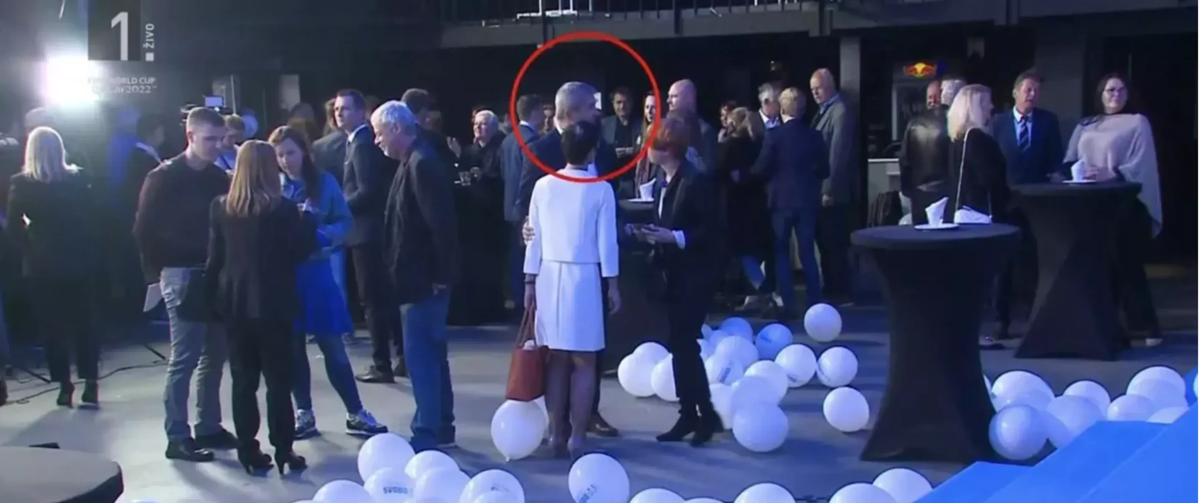 Predvolilna konvencija Gibanja Svoboda, 19. april, Ljubljana: Miloš Njegoslav Milović diskretno objema Marto Kos, takrat še podpredsednico GS. (vir: TV Slovenija)