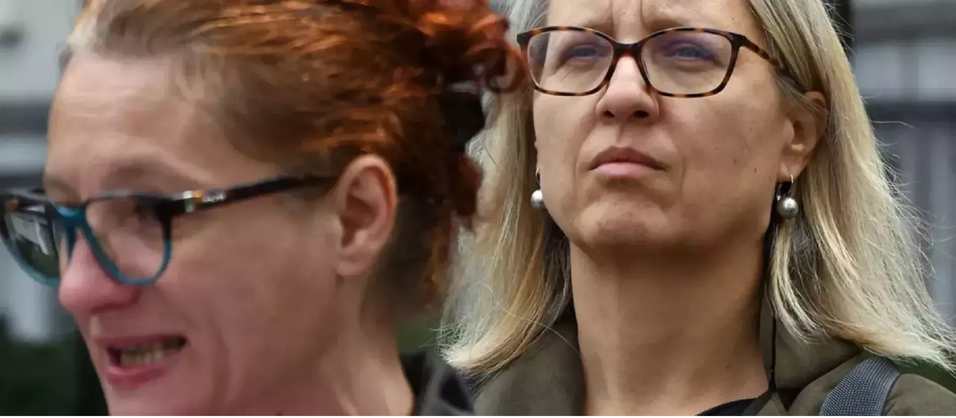 Helena Milinkovič in Ksenija Horvat (desno), v prvih vrstah novinarskih protestov na RTV (foto: Bobo)