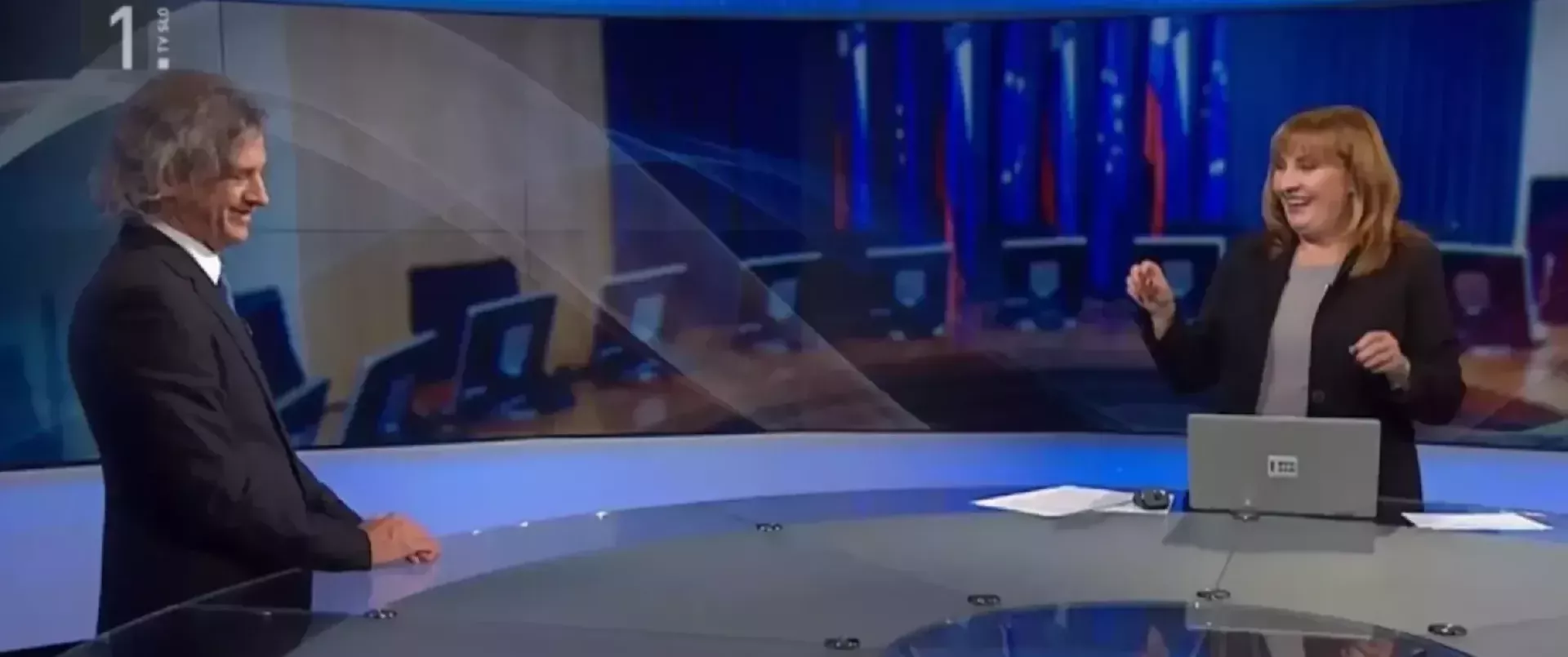 Golob na Odmevih, voditeljica Tanja Starič neznansko zadovoljna ... (vir: Zaslonski posnetek)