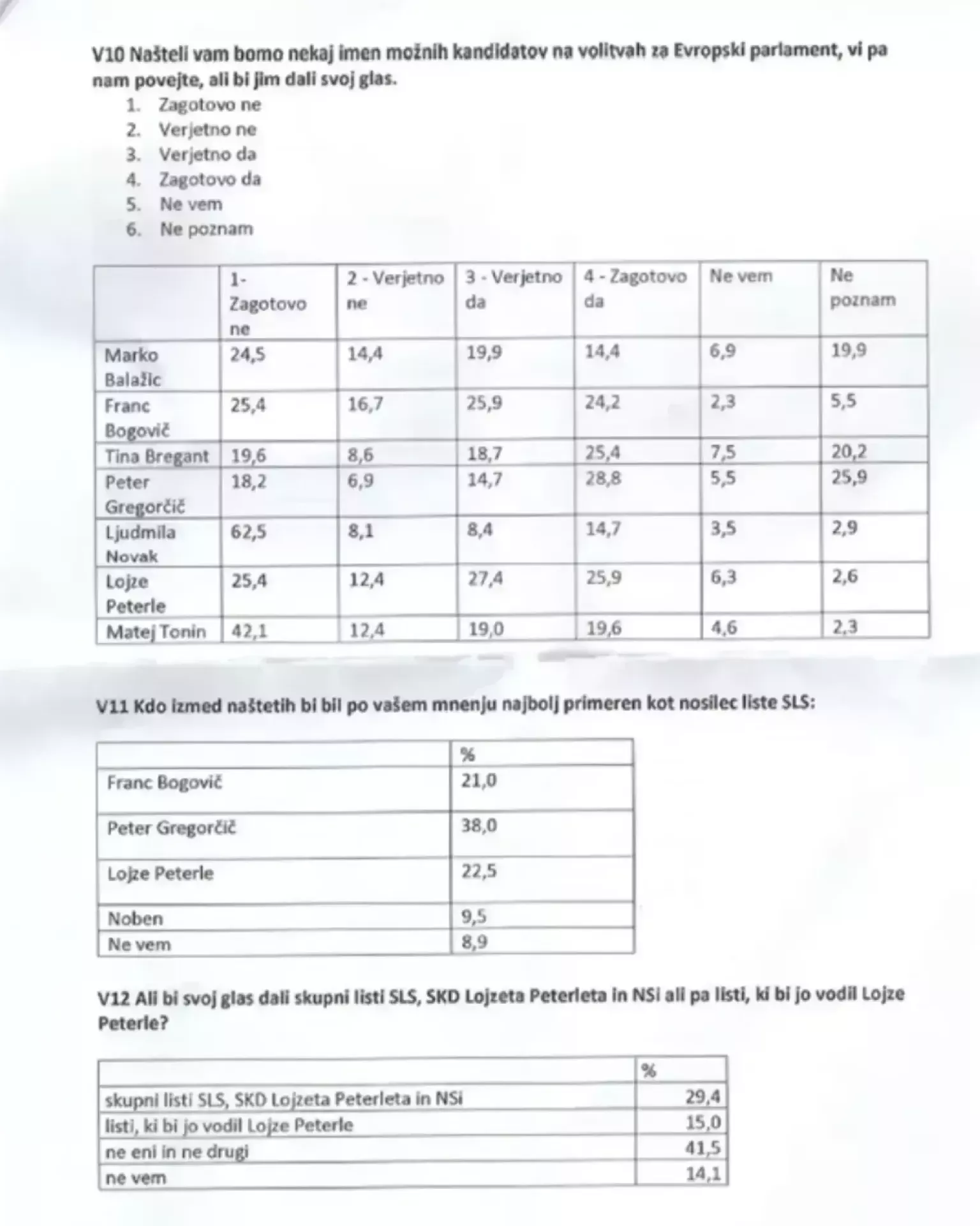 Iz te - Bogovičeve - ankete je sicer tudi razvidno, da Slovenski ljudski stranki na evropskih volitvah niti ne kaže tako slabo, kot sicer prognozirajo ankete Mediane na Delu ali na Pop TV. Prej nasprotno, celo več kot stranki SD. (vir: Ninamedia)