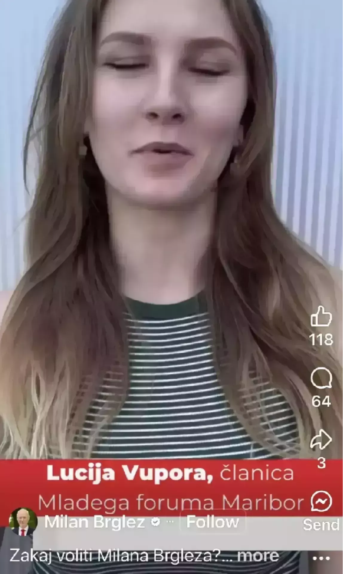 Lucija Vupora med videoagitacijo za Milana Brgleza (vir: Facebook)