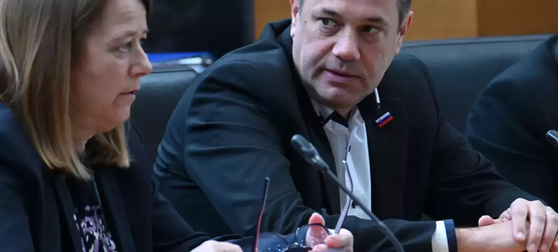Zbiratelj funkcij Matej Arčon in Petra Škofic, nekdanja šefinja Golobovega kabineta. (foto: Bobo)