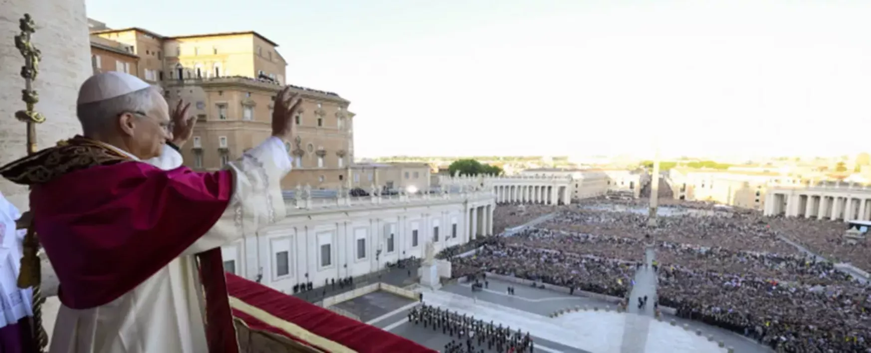 Novi papež Leon XIV med svojim prvim nagovorom v Vatikanu. (vir: Vatican Media)