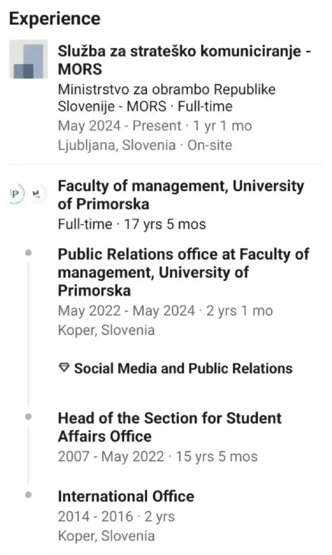 ... in takšne so njene "novinarske reference" (vir: LinkedIn). Povedano drugače: vojaška piarovka jim piše članke.