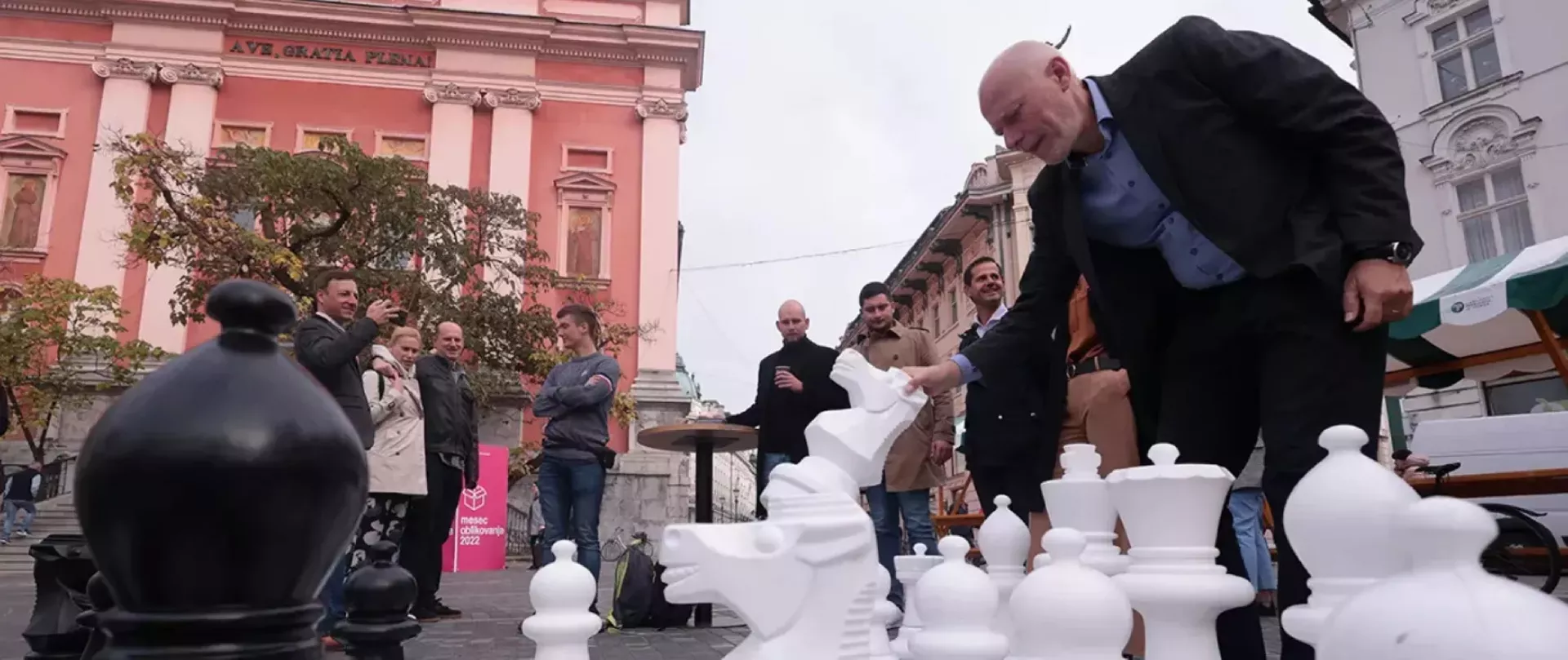 Milan Brglez med igranjem uličnega šaha v Ljubljani (foto: Bobo)